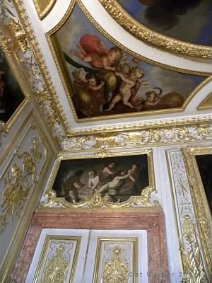 Each section of the ceiling is highly decorated. The black and white Baroque trim is punctuated with the different tones of the murals that are also trimmed! Detail upon detail. I swear I could have spent hours just trying to take them all in.